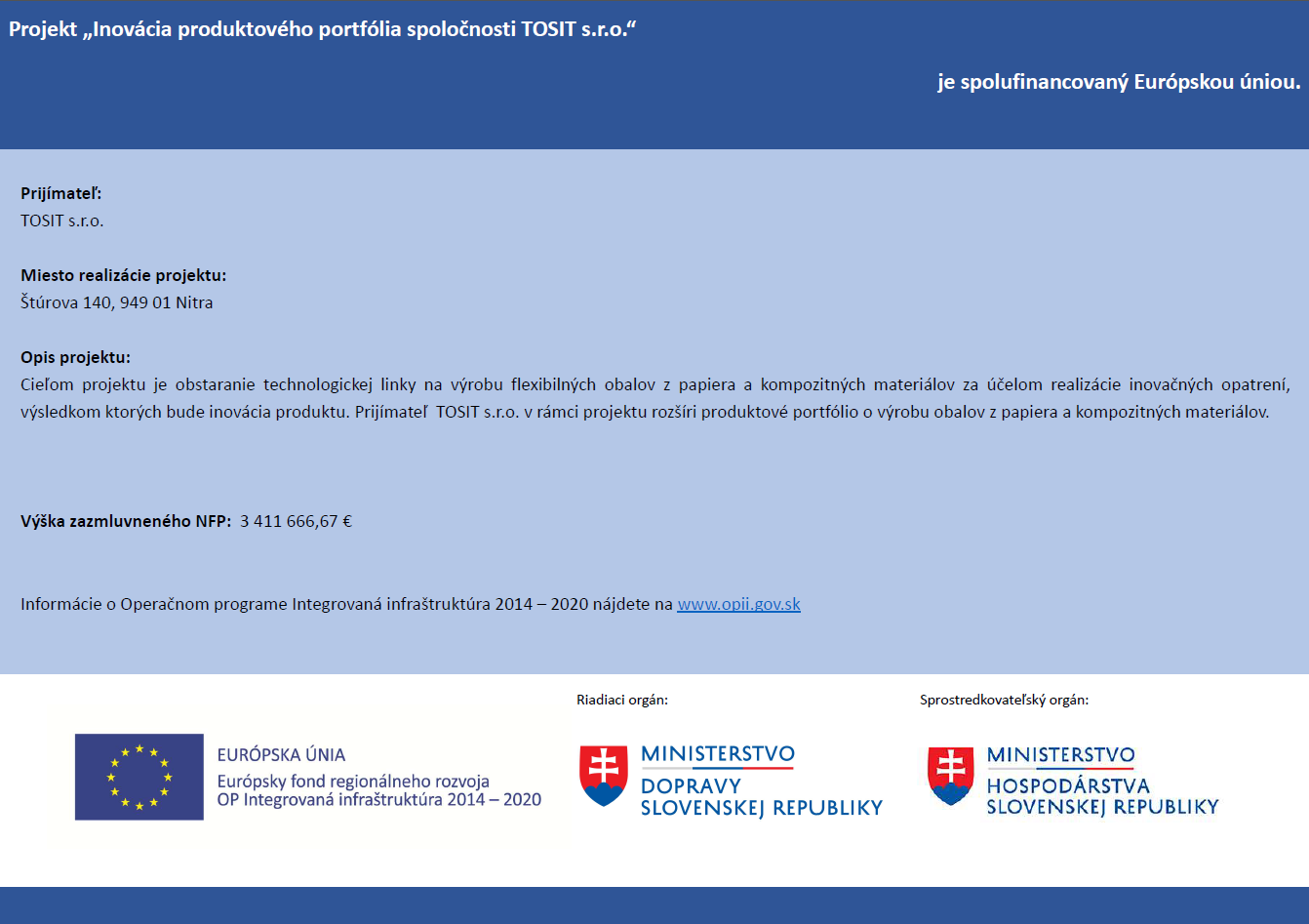 Projekt: Inovácia produktového portfólia spoločnosti TOSIT s.r.o.